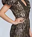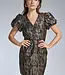 De aansluitende pasvorm wordt versterkt door de elegante V-neckline en de korte pofmouwen, die het geheel een subtiele twist geven. De rijke jacquard kwaliteit zorgt voor een luxe uitstraling, terwijl het elastiek aan de achterkant extra comfort biedt. Een veelzijdige keuze voor verschillende gelegenheden.