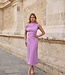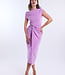 Deze jurk is gemaakt van een crepe jersey kwaliteit met stretch, waardoor hij soepel om het lichaam valt en de hele dag comfortabel draagt. De asymmetrische schouderlijn geeft het ontwerp een verfijnde, modieuze twist, terwijl de goudkleurige buckle in de taille een chic accent vormt en het silhouet prachtig accentueert.