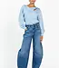 De Evelyn Trui heeft een minimalistisch silhouet met een opvallende twist: een asymmetrische halslijn met cut-out detail. De zachte, gladde stof valt soepel en draagt comfortabel. De lange mouwen zijn licht gepoft en eindigen in een smalle boord. Combineer met de Sacha barrel jeans voor een casual look met een modern randje.