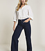 Mira heeft een hoge taille. De broek zit ruim bij de bovenbenen en heeft een extra breed uitlopende pijp.