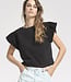 Strakke lijnen en zelfverzekerde eenvoud kenmerken de zwarte top met wijde schouders. Gemaakt van 100% katoen, combineert dit item een strakke, gestructureerde look met natuurlijk ademend vermogen. Het ontwerp met wijde schouders geeft een moderne, architectonische touch en creëert een krachtig maar ingetogen silhouet – een moeiteloos essentieel item dat zelfs de meest eenvoudige outfit naar een hoger niveau tilt.