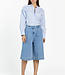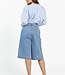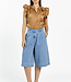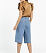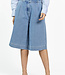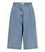 Deze denim broekrok combineert het comfort van een broek met de uitstraling van een rok. Het wijde, rechte model valt tot net over de knie en heeft een hoge taille voor een flatterende pasvorm. De stevige spijkerstof geeft iets stoers, terwijl het silhouet vrouwelijk blijft. Ideaal voor een moderne, casual look.
