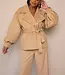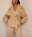 De Leyli Coat is een stijlvolle jas die moeiteloos structuur en vrouwelijkheid combineert. Uitgevoerd in een zachte polyester twill kwaliteit, biedt deze korte double-breasted jas een moderne look met klassieke elementen. De pofmouwen zorgen voor een subtiele, modieuze touch, terwijl de tailleceintuur het silhouet mooi accentueert.