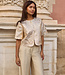 Deze elegante pantalon is uitgevoerd in een geweven kwaliteit met een mooie, subtiele glans die zorgt voor een luxe uitstraling. De wijde pijpen geven het ontwerp een moderne en flatterende fit, terwijl de paspelzakken aan de achterzijde zorgen voor een verfijnde afwerking. Een veelzijdig item dat moeiteloos combineert van chic tot casual.