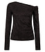 De Lumia top is uitgevoerd in een glanzende lurexmix en heeft een asymmetrische halslijn die speels over één schouder valt. De aangesloten pasvorm en fijne plooidetails zorgen voor een vrouwelijke uitstraling. Combineer met de Nasma rok voor een feestelijk accent of met een stoere spijkerbroek voor een meer casual look.