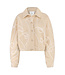 De Milou Jacket is een elegante eyecatcher jasje in beige met een verfijnd geborduurd patroon. De pasvorm is op maat maar iets losser, wat zorgt voor een comfortabele én stijlvolle look. Draag dit bijzondere jasje over een basic outfit voor een subtiele statement, perfect voor zowel overdag als 's avonds.
