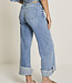 Mira Turn Up heeft een hoge taille. De broek zit ruim bij de bovenbenen en heeft een extra breed uitlopende pijp met een brede omslag.