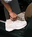 We hebben twee bestverkochte concepten gecombineerd: mesh van gerecyclede plastic flessen en veganistisch "leer" van ananas, en hebben dit omgezet in onze Re-Run Pineapple. Meer specifiek is het bovenwerk gemaakt van de bladeren van ananassen van lokale ananasboeren uit de Filipijnen, wat hen extra inkomen oplevert en dierlijke ingrediënten vervangt door plantaardige alternatieven.