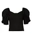 Deze top is gemaakt van een luxe jersey kwaliteit met structuur en subtiele glans, wat zorgt voor een chique en verfijnde look. Dankzij de stretchstof sluit de top mooi aan op het lichaam en biedt hij optimaal draagcomfort. De vrouwelijke neklijn en pofmouwen geven het ontwerp een stijlvolle, romantische touch. Perfect te combineren met een pantalon of rok voor een modieuze, feestelijke outfit.