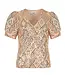 Deze opvallende top is gemaakt van een prachtige sequinskwaliteit op een fijne meshbasis, wat zorgt voor een feestelijke en elegante uitstraling. De top heeft korte mouwen en een vrouwelijke V-hals, waardoor het item perfect is voor zowel feestelijke gelegenheden als stijlvolle casual momenten. Combineer met een mooie pantalon of rok voor een complete look.